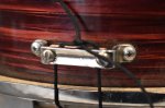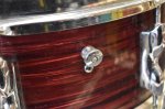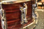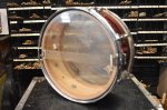 Overall the drum is in good condition for its age. We believe the shell is Birch with Beech re-rings. The hardware shows some signs of pitting and rust. The reso side hoop has one area where it is missing the chrome plating (see pictures). The wrap is intact and doesn't show any major flaws or blemishes, just some light scratching here and there. There is one tension rod that was replaced but aside from that it is all original.