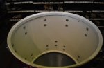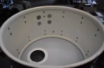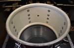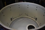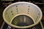 16" x 16" Serial#160051: non-original tension rods and hoops. modern replacement legs. shell is drilled for an internal muffler, but the wrap covers it. new heads.