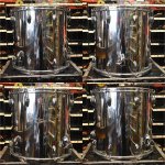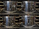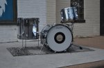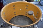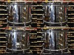 Cosmetically these drums look great given their age. Usually chrome shells have a fair amount of scratching, but these are pretty clean. The floor tom is missing the muffler. There's really tiny specks of pitting, and the occasional more noticeable scratch on the wrap of all the drums. The Bass drum has some small scuffs on the wrap. The hardware is in great shape with minimal amounts of pitting/patina. The rack tom mount is unfortunately MIA, and the snare stand in the photos is not included.