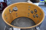 All these shells are from different kits from the 60's and 70's. The shell composition of the rack tom is a 5-ply with no re-rings, which puts it somewhere after 72'. The floor tom is a 3-ply shell with re-rings, but the badge places it somewhere in 70' - 81'. The bass drum is also a 3-ply with re-rings, but the badge places it somewhere in 63'-69'.